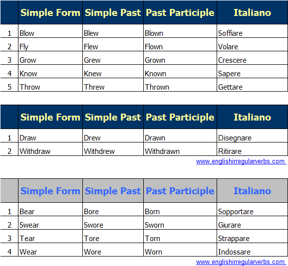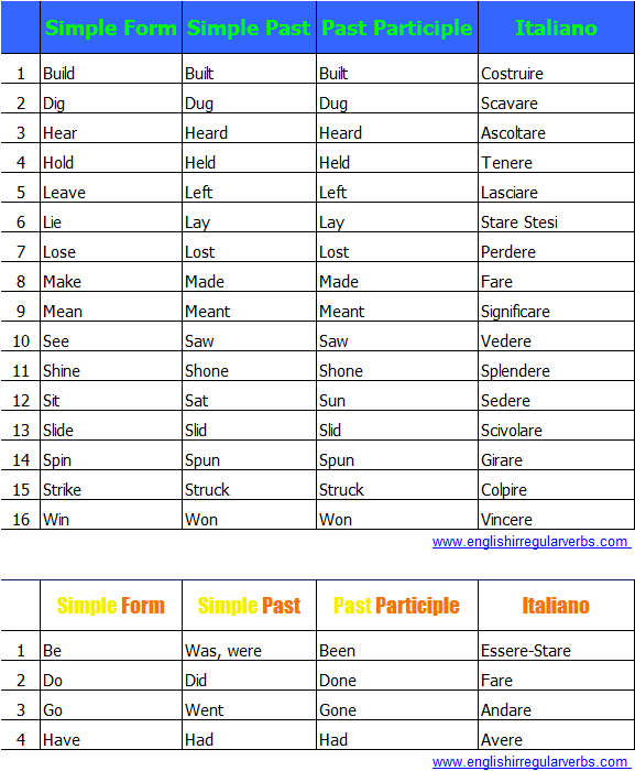 Verbi Irregolari Inglesi